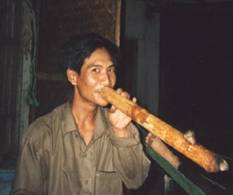 Отдыхать в этой части света, конечно же, интересно уже хотя бы тем, что каждый день можно открывать новый остров, изучать его. Хотя не на каждый остров можно высадиться, некоторые из них не имеют берега как такового, лишь крутой обрыв. Такие острова не населены людьми. Некоторые напротив имеют чудные пляжи и почти нетронутые леса. Вскоре и мы оказались на таком острове, за что огромное спасибо нашему руководителю Володе. Он (остров) назывался Мын Чао "Mihn Chao". Остров был интересен хотя бы тем, что имел как скалистую, так и песчаную поверхность. Тут был и лес, в котором росло несчетное количество экзотических фруктов. Найти пригодный пляж для плавания с маской оказалось совсем не трудно. Берег с практически белым песком, вода такая прозрачная, что видно дно даже на глубине 10-20 м. А самое главное - ни души. Только ласковый шелест волн и пение цикад. Кайф полный!!! Температура в тени около 400 C, чтож жарко не спорю. Казалось, что кожа скоро начнет обугливаться. От такой жары всем нестерпимо захотелось пить. Проблему решил найденный нами колодец. Не думая о санитарии, каждый жадно припадал к ведерку. Вечером того же дня вернулись в Kai-Rong. Предстояло отведать совсем уж экзотические блюда в местном ресторанчике. Блюда назывались thit-cho и thit-meo, с фруктами и гарниром, плюс огромное количество приправ и зелени. Тут думаю, стоит уточнить, что же такое на самом деле thit-cho и thit-meo. Слово "cho" на вьетнамском языке означает "собака", а "meo", соответственно "кошка". Несложно догадаться, что "thit " переводиться как "мясо". Вот такой ужин. О гастрономических пристрастиях не принято спорить, но экзотика есть экзотика. Если хотите попробовать, пожалуйста, поезжайте в Юго-Восточную Азию. Описывать вкусовые качества вышеуказанных блюд не берусь, по определенным причинам. После ужина мы с моим неизменным другом Димой прошлись по ночным пляжам острова, рассуждая на тему, как это круто - здесь и сейчас. На острове оказалось много чайных заведений, где можно выпить чашку хорошего ароматного китайского зеленого чая. Там же можно раскурить трубку с табаком "thuoc la". Достаточно интересная культура курения, у вьетнамской трубки. Сама по себе трубка это кусок толстого бамбука с боковым отверстием с одного конца и вставленной туда маленькой воронкой, в нее и насыпается табак. Табака ровно столько, чтобы хватило на 2, максимум 3 затяжки. Но крепость табака такая, что ощущения как после выкуривания 5 сигар. Это мы поняли, после того, как попробовали покурить под дружный хохот и одобрения со стороны хозяина заведения и местной детворы.